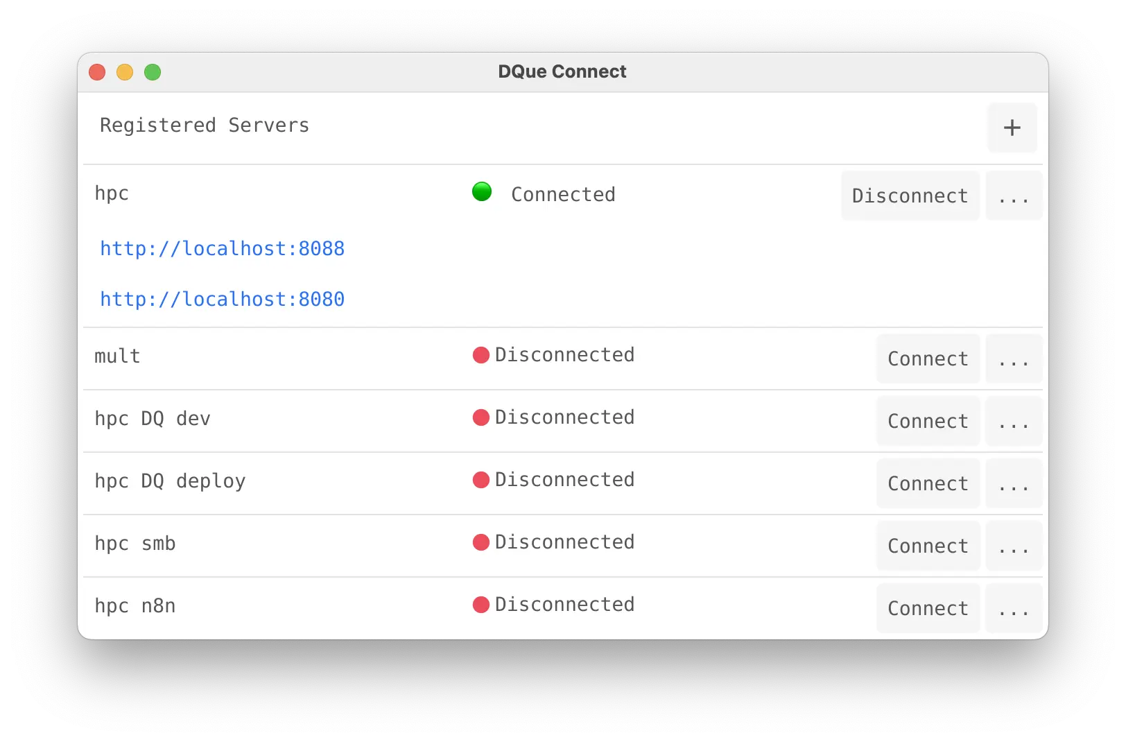 Section titled “How to Use DQue Connect”DQue Connect is a program that helps you easily manage and run SSH port forwarding settings in Windows and macOS environments.