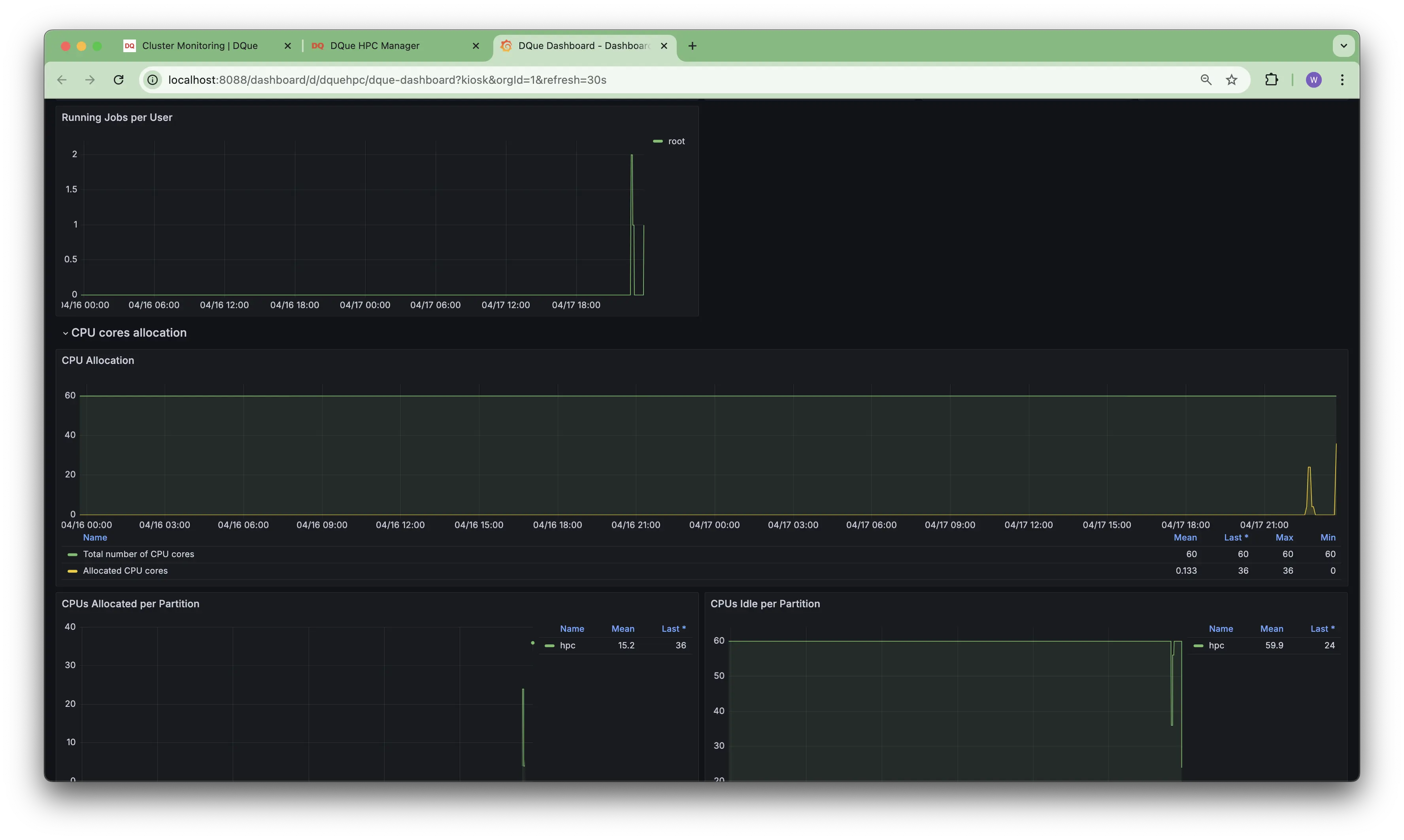 - CPUs Allocated per Node (Graph): Shows the history of CPU allocation for each node.