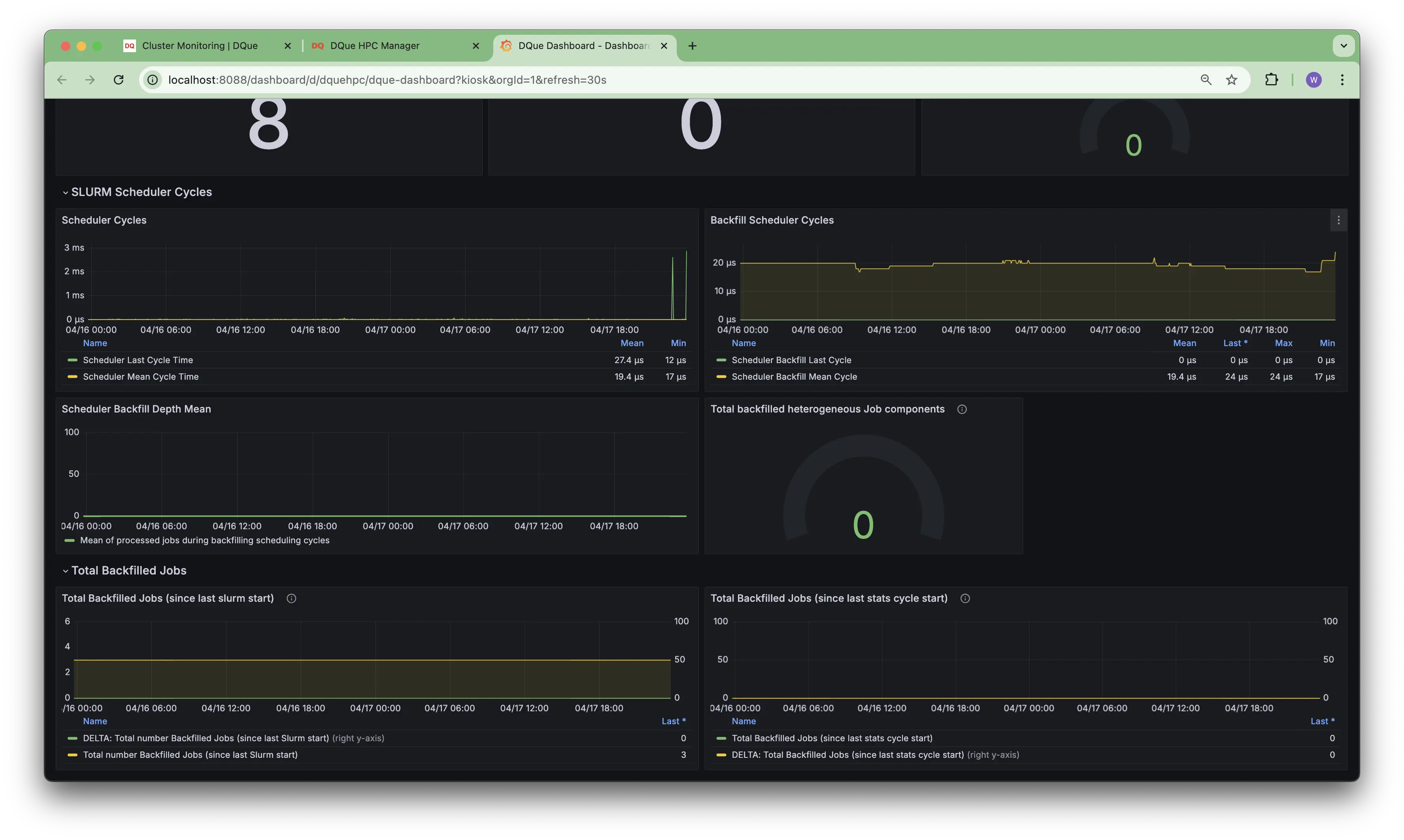 - Backfill Scheduler Cycles (Graph): Tracks the duration of backfill scheduler cycles.
