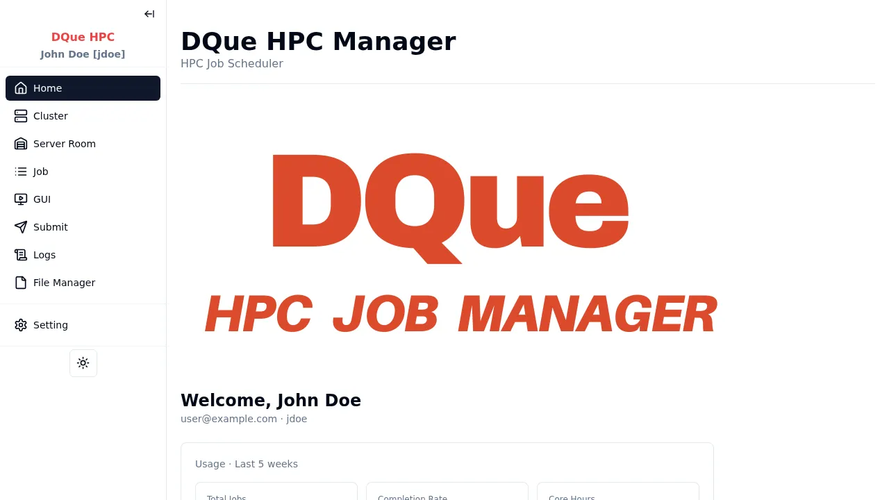 - Usage Statistics — shows your personal resource consumption (CPU hours, jobs submitted, etc.).