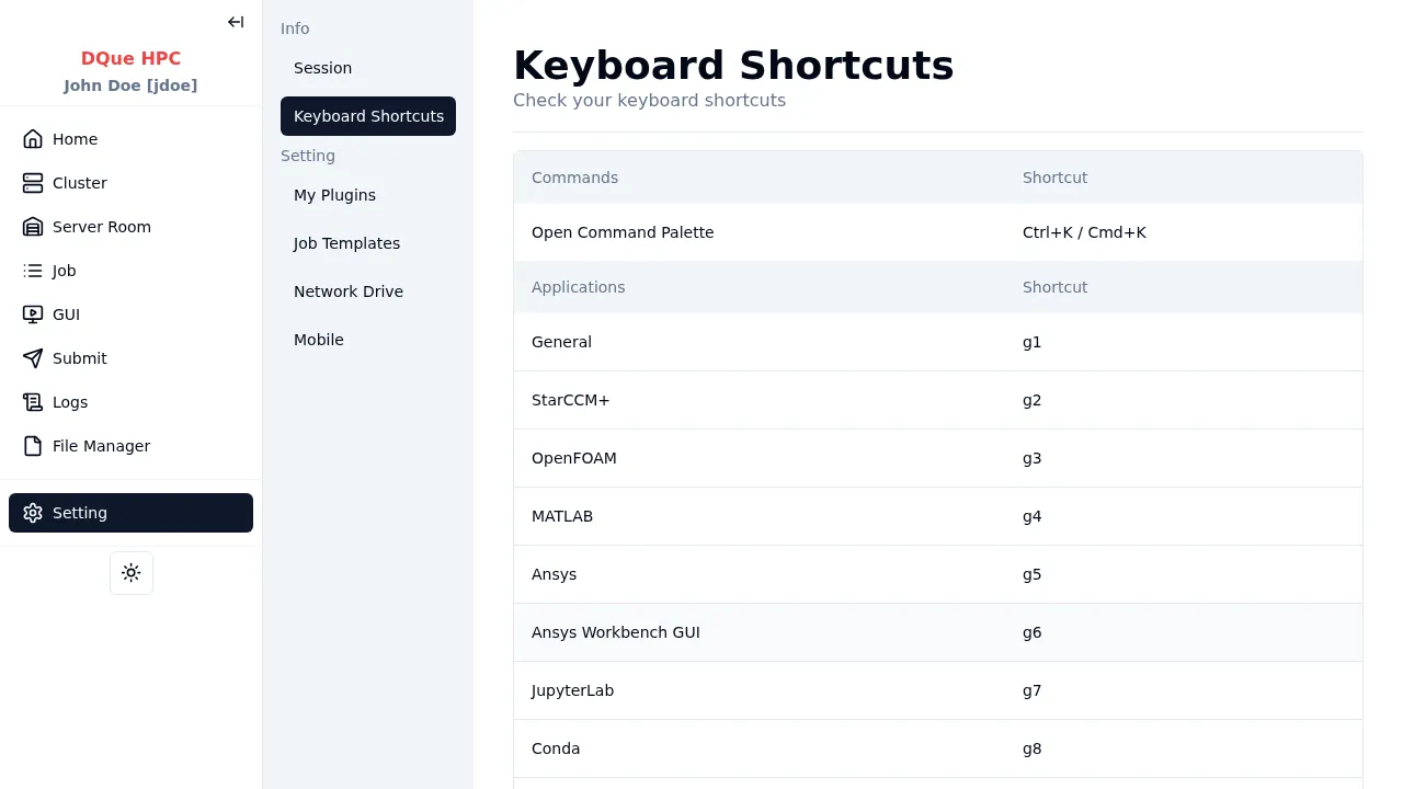 Section titled “Applications”Each enabled application gets a shortcut (g1, g2, g3, …) in the order they appear on the Submit Dashboard.