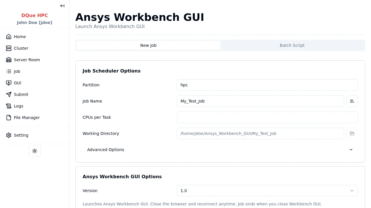 Section titled “Step 3: Submit”Click Submit to launch the Workbench GUI as a SLURM batch job.