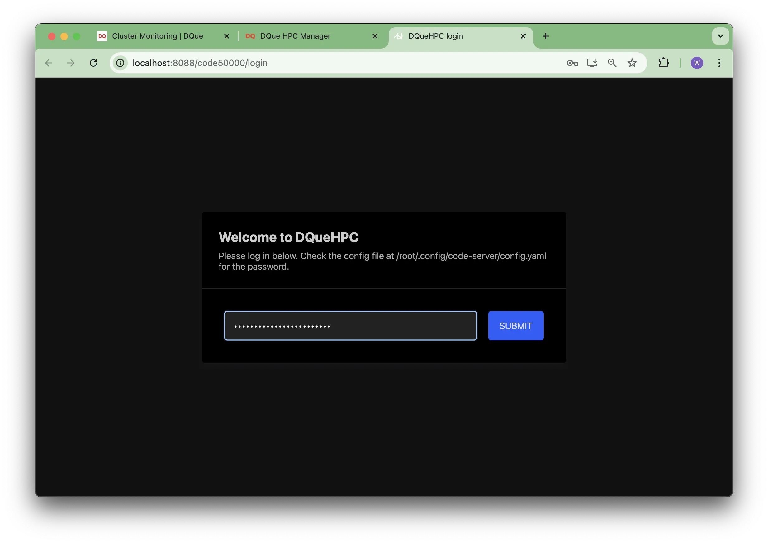 Click Connect. You will be presented with the CodeServer login screen: