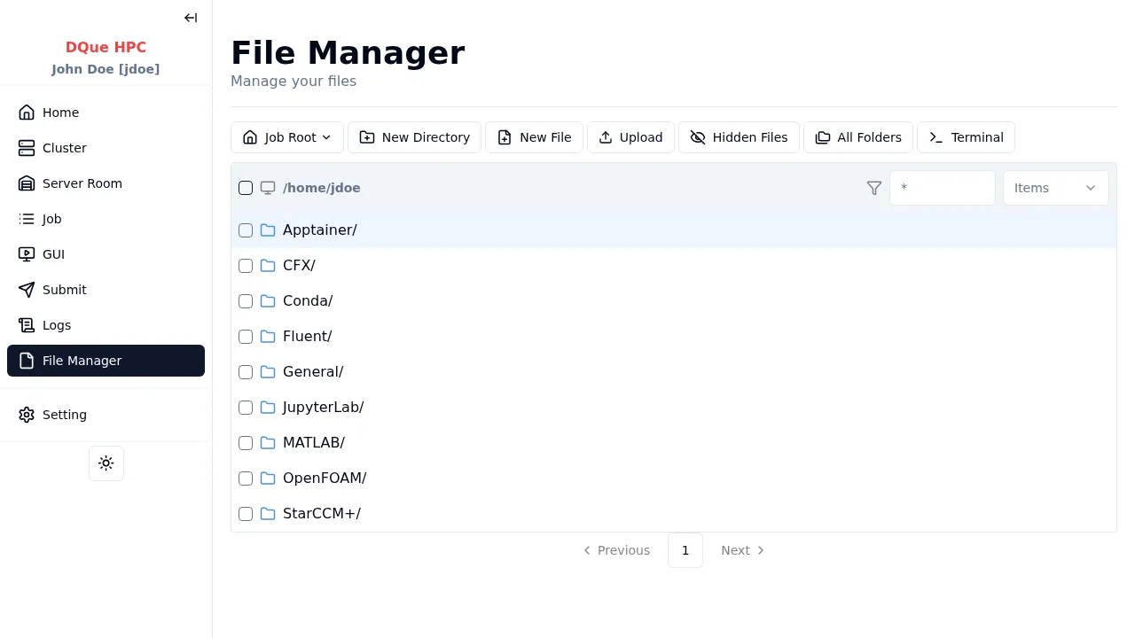 파일 관리자는 HPC 홈 디렉토리 및 허용된 경로를 위한 브라우저 기반 파일 탐색기를 제공합니다.