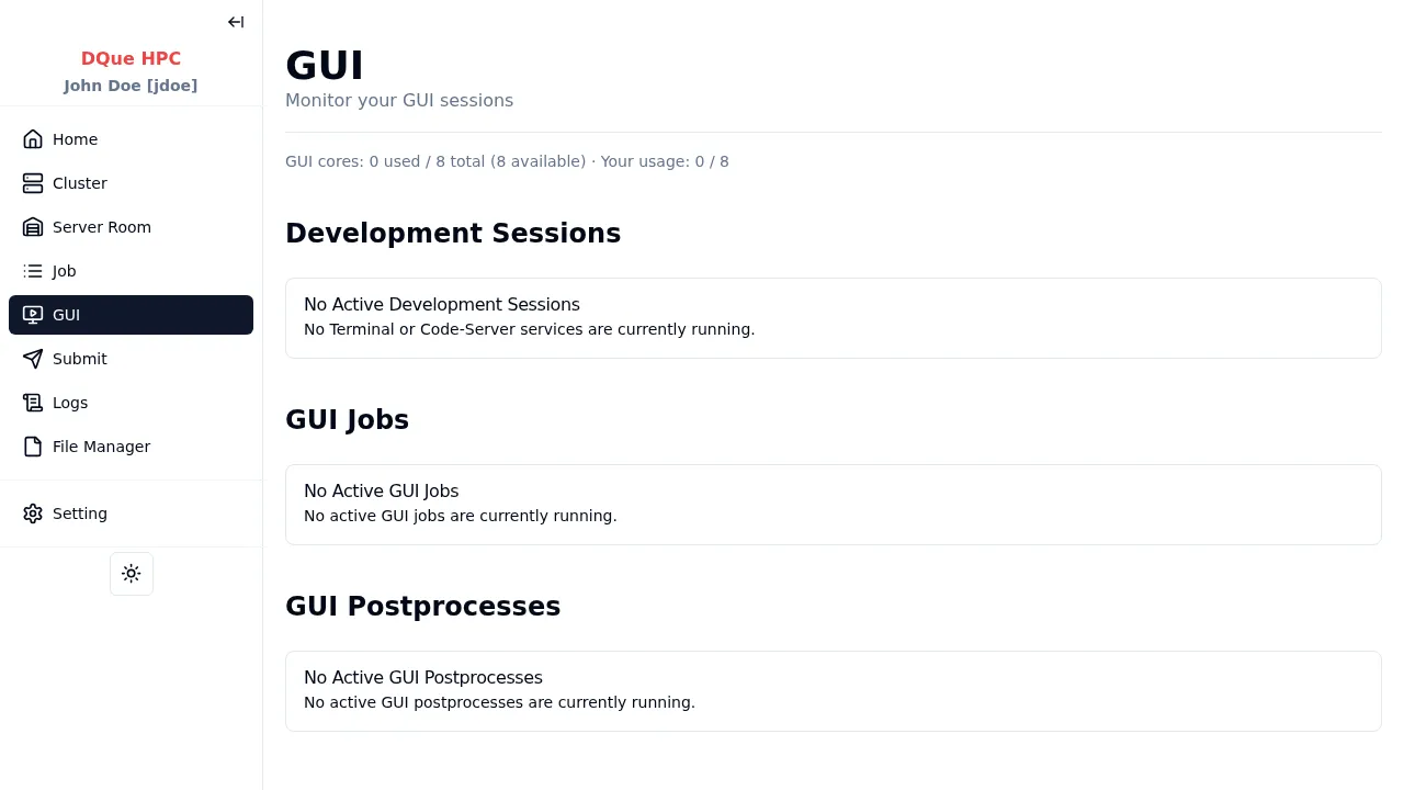GUI 세션 페이지는 대화형 그래픽 애플리케이션 세션을 관리합니다.