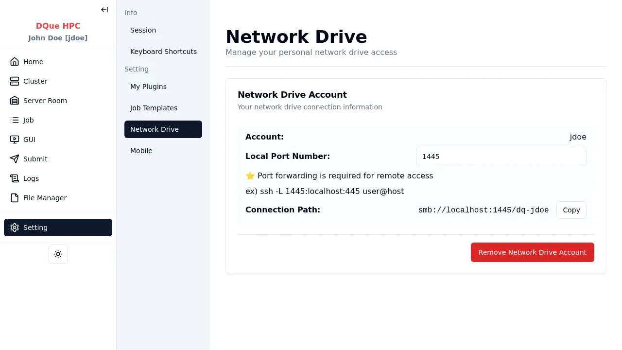 \\server\dq-jdoe). - Linux: 파일 관리자 > 서버에 연결 > SMB 경로 붙여넣기.